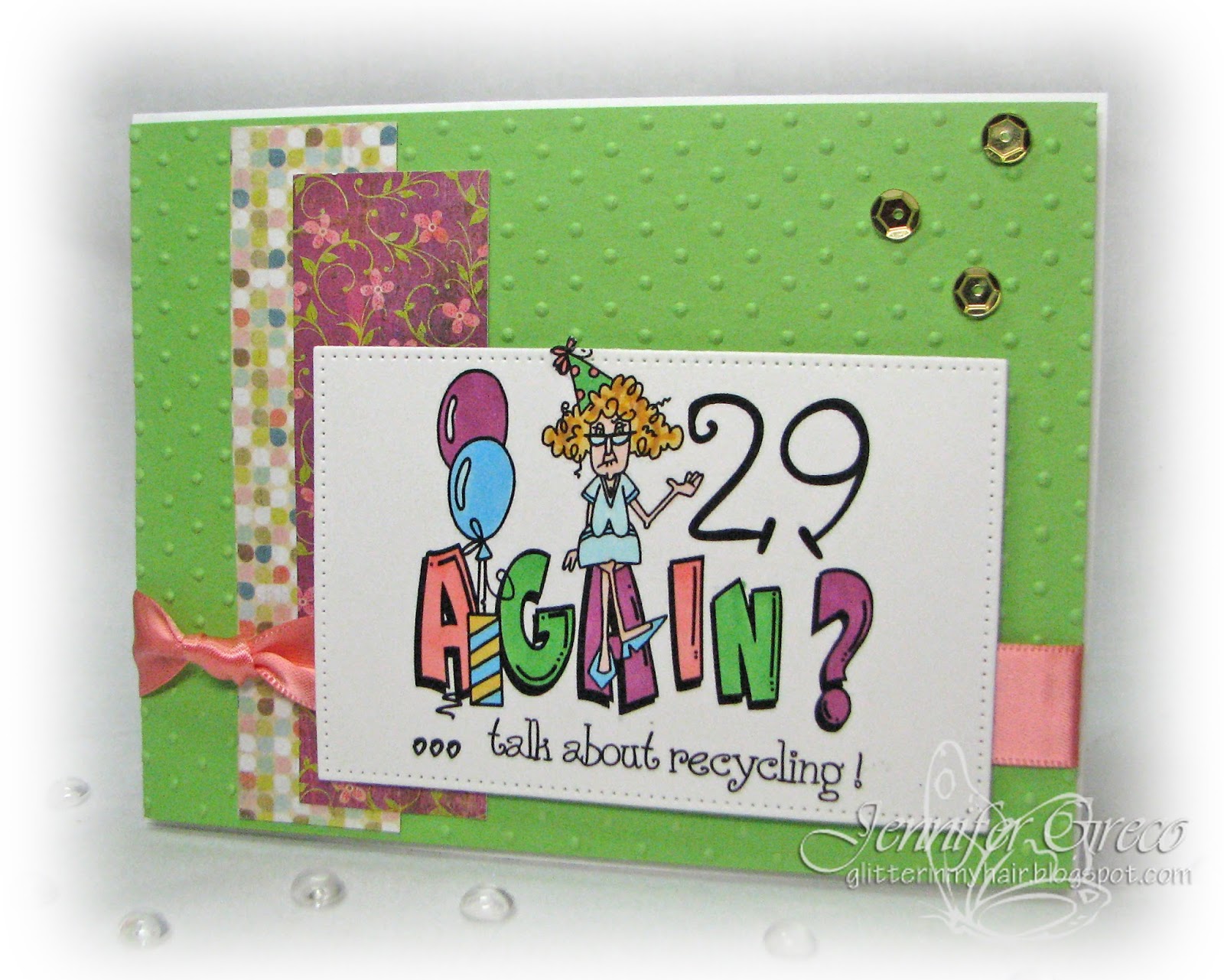LOL -- I giggled when I saw this cute image and sentiment! I just celebrated my 51st and told everyone it was the anniversary of my 29th AGAIN! Thanks for sharing your birthday card with us this month at Paper Sweeties!